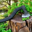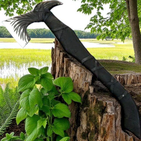 The Carbon Steel Roughly Designed Viking Axe blends traditional craftsmanship with raw power. Its hand-forged carbon steel blade is designed for precision chopping and durability, making it a versatile tool for any task. The black, woody shaft provides a firm grip, adding style and control to this Viking-inspired axe.