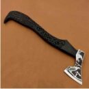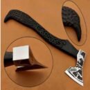 Forged Raven Carved Viking Axe with Black Handle