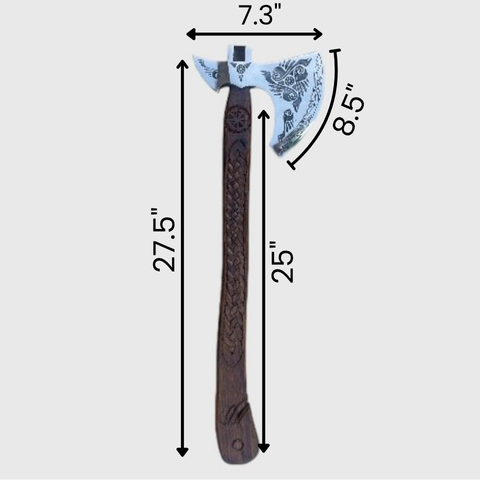 This axe merges rugged functionality with decorative artistry, making it a standout choice for enthusiasts and collectors alike.