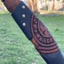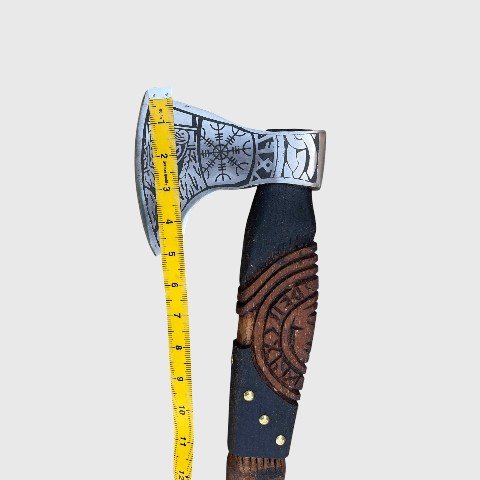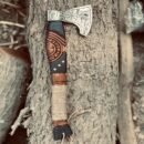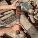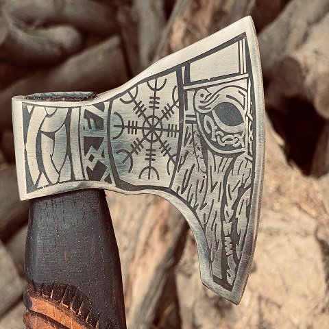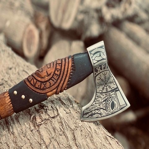 - Hand-forged carbon steel blade with symbolic Viking engravings