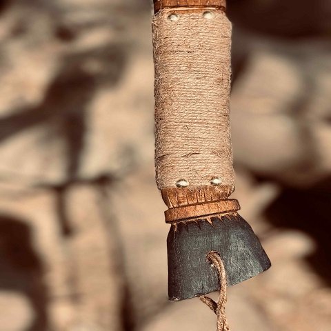 - Ash wood handle with leather wrapping for comfortable grip