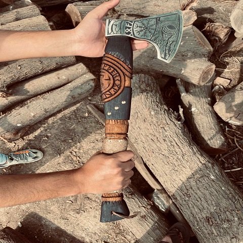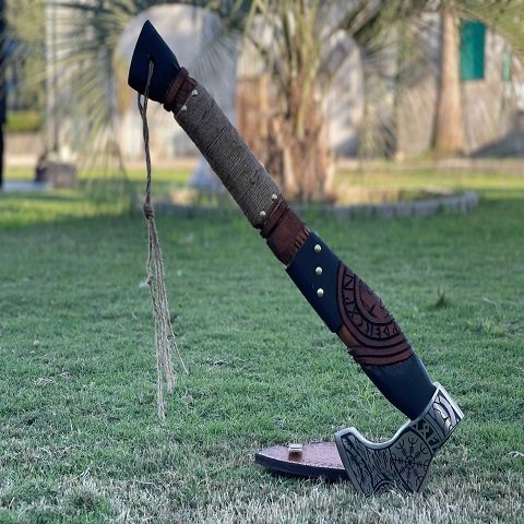 Be the first to review “Hand-Forged Viking Ragnar Axe: Engraved Carbon Steel Blade with Ash Wood Handle & Leather Sheath” Cancel reply