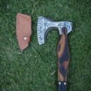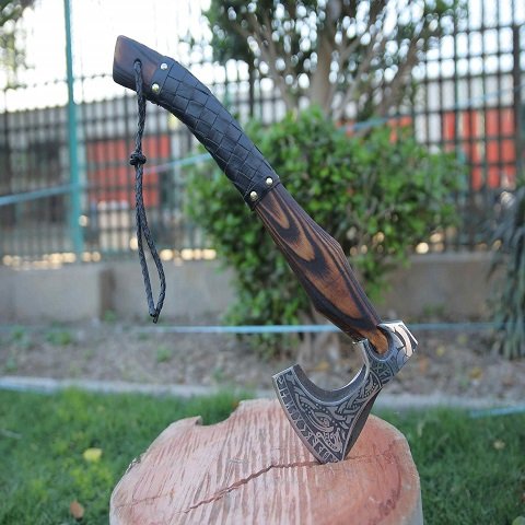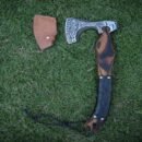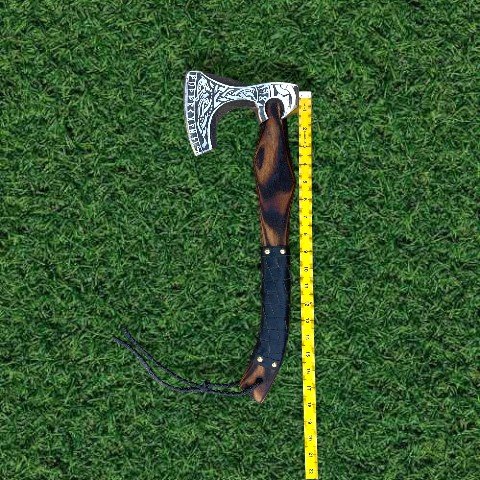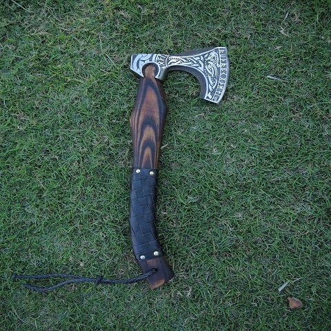 Elevate your outdoor adventures with this hand-forged Viking Axe, crafted from high carbon steel for ultimate durability. Its sharpened edge and intricately etched head make it both a powerful tool and a striking collectible. The comfortable leather-wrapped handle ensures a secure grip, while the included sheath provides safe storage—perfect for camping, backyard chopping, or gifting to enthusiasts and history lovers.