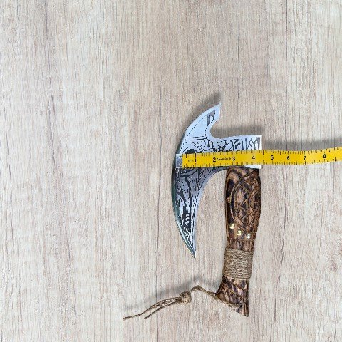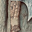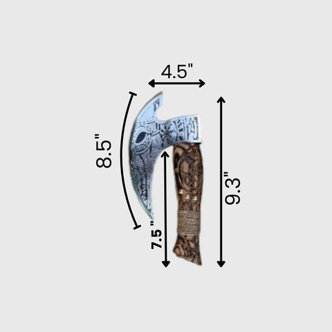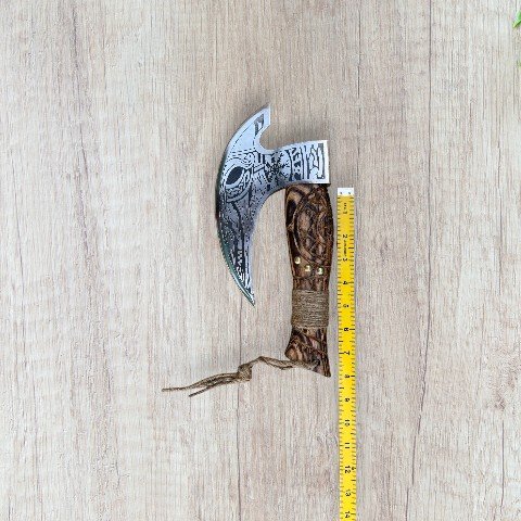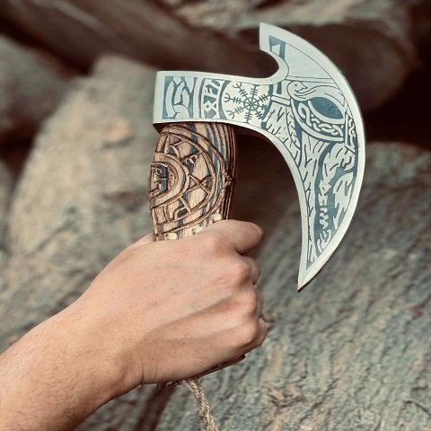 - Authentic Viking design with intricate engraved ash wood handle